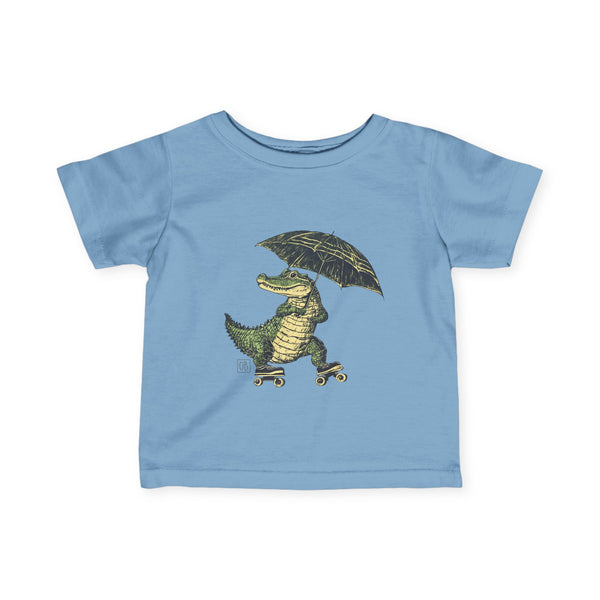 Roll into fun with this adorable gator tee! Featuring a playful alligator cruising on roller skates while holding an umbrella, this t-shirt is perfect for little adventurers who love a splash of whimsy. Soft, comfy, and made for non-stop giggles!