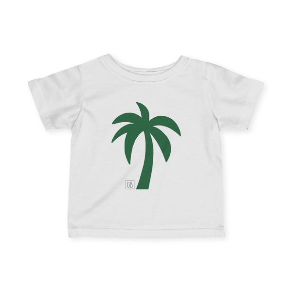 Dress your tiniest jet-setter in our infant palm tree t-shirt! With a chic palm tree silhouette, this tee adds preppy paradise charm to their first beach trip or nap under the cabana. Pair it with a monogrammed sunhat for extra posh points!