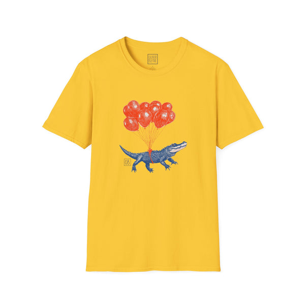 Bring some playful fun to your day with this gator party t-shirt! Featuring a gator floating high with a bunch of helium balloons, this tee is perfect for anyone who loves a whimsical celebration. Made from soft, breathable cotton, this shirt keeps you comfortable as you float through life’s fun moments. Whether you’re enjoying a party or just feeling festive, this shirt will keep the good vibes going!