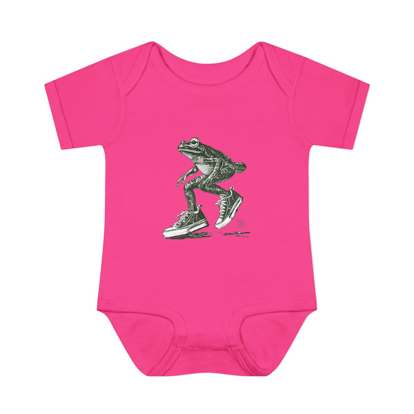 Your little one will be jumping for joy in this cozy frog onesie! Featuring a happy frog in stylish sneakers, this bodysuit is perfect for tiny trendsetters who are always ready to bounce. Soft, breathable, and oh-so-cute, it’s the perfect fit for playtime, nap time, or any time!