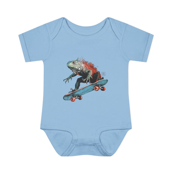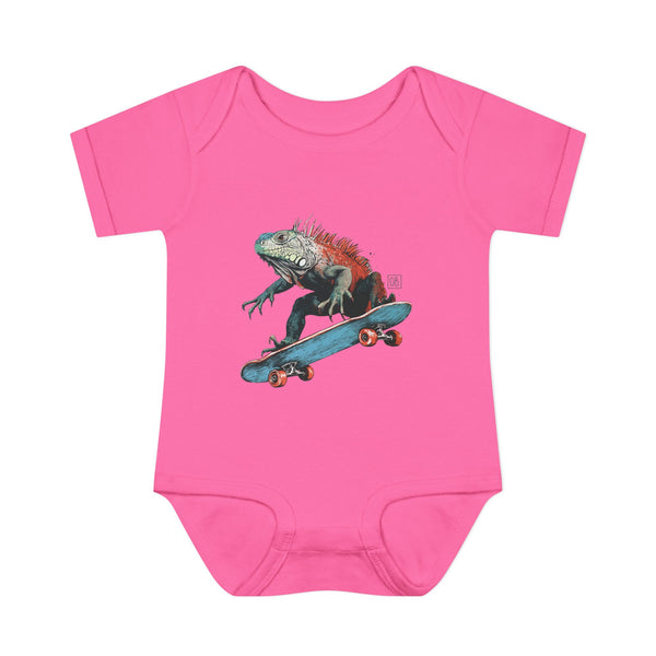 Get your little one’s style rolling with this cute iguana onesie! Featuring a colorful iguana on a skateboard, this bodysuit is perfect for tiny trendsetters. Made from soft, breathable cotton, it keeps them comfy and stylish, whether they’re cruising through their first crawl or just lounging around. Whether they’re on the move or taking a break, this onesie adds a fun and colorful touch to their day.
