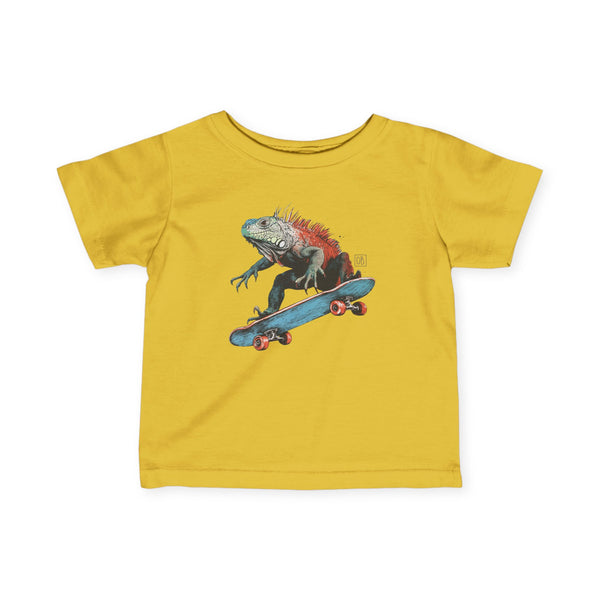 Let your little one roll in style with this vibrant iguana t-shirt! Featuring a colorful iguana cruising on a skateboard, this tee is perfect for tiny adventurers who love to stay active. Made from soft, breathable cotton, it keeps them comfy whether they’re crawling, playing, or skating through life. Whether they’re mastering their moves or just chilling, this shirt adds a fun, dynamic vibe to their wardrobe.