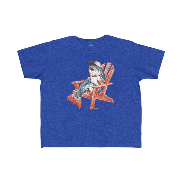 Kick back in style with our sea bass t-shirt! Featuring a laid-back bass lounging in an Adirondack chair, this tee is perfect for kids who know how to relax and reel in the fun.