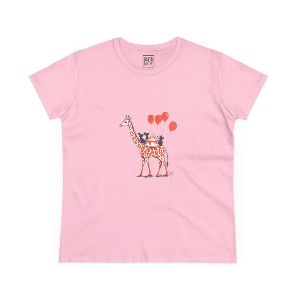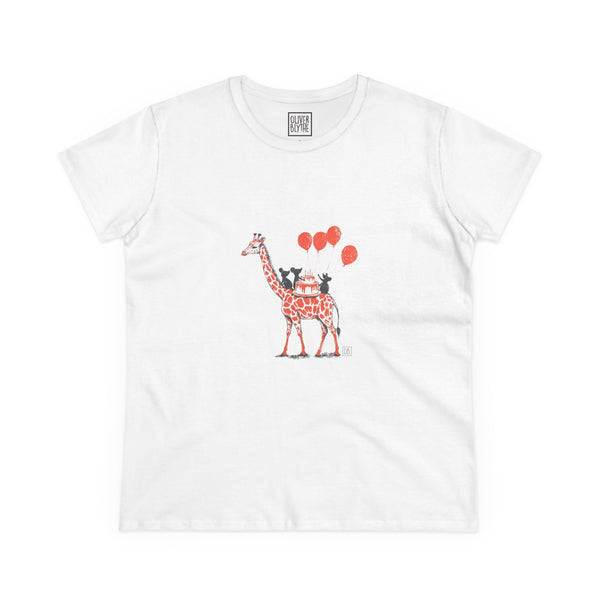 Elevate your party style — literally. This OB crew neck tee features a birthday-ready giraffe hosting cake, balloons, and a parade of party mice. It’s polished, preppy, and playfully unexpected — a timeless classic with a side of celebration.